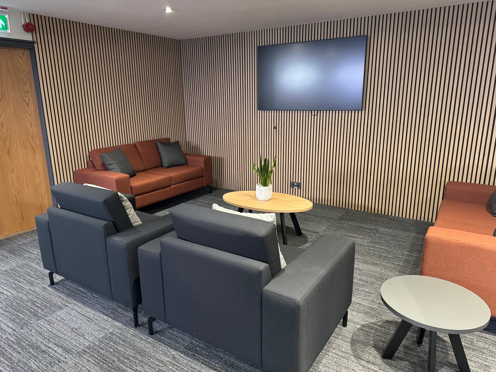 This project involved a full refurbishment of a modern office and lounge area, transforming the space into a stylish and functional environment. With new wall panelling, updated flooring, contemporary furniture, and thoughtfully designed layouts, the space now combines comfort with professionalism. The result is a welcoming and productive area that enhances both aesthetics and day-to-day usability.